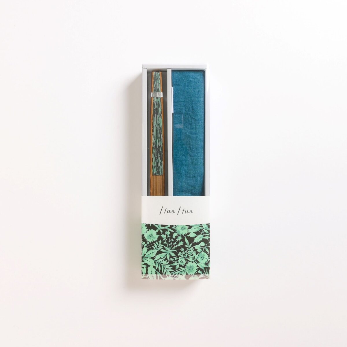 Folding fan – Fan Fun Kyoto – Botanical This handmade folding fan comes from Kyoto. A folding fan passes through the hands of master craftsmen 87 times. The result is a beautiful, high-quality fan with many ribs that feels good in the hand and produces a gentle yet powerful breeze. The frame of the fan is made of thinly sliced Japanese bamboo. The folding fan consists of three different layers of Japanese paper. The fan can be stored in a matching textile bag when not in use.