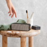 The aBOOM Bluetooth speaker is small, powerful and portable. It offers loud sound, stereo play with two speakers, up to 20 hours of playback time, Bluetooth 5.0, IPX7 rating for water resistance. Ideal for living rooms, beaches and bathrooms.