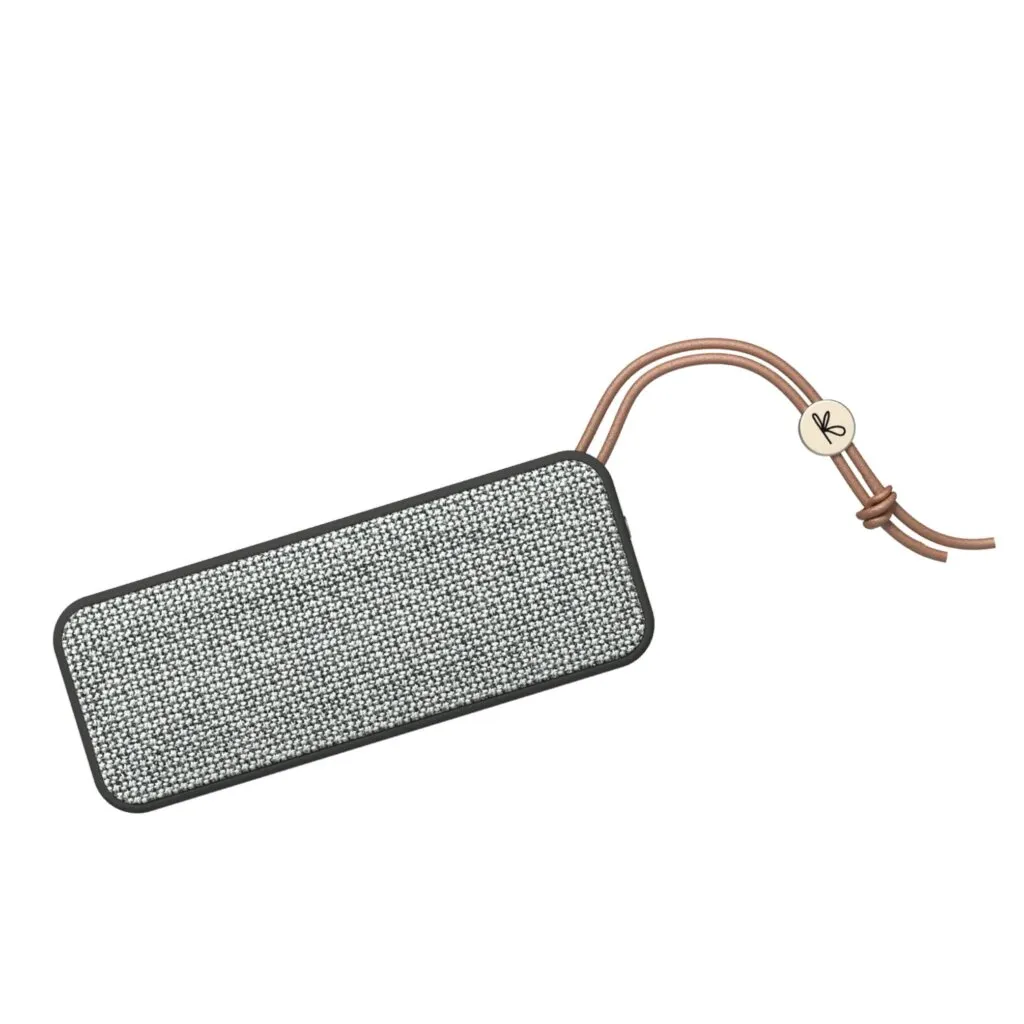 Experience musical adventures with the Kreafunk GROOVE Mini speaker. Compact, water-resistant (IPX4), with rich, detailed sound and 20 hours of playback time. Connect two speakers for stereo play. The textile front is made from recycled material. Bluetooth 5.2, charging via USB or QI.