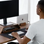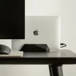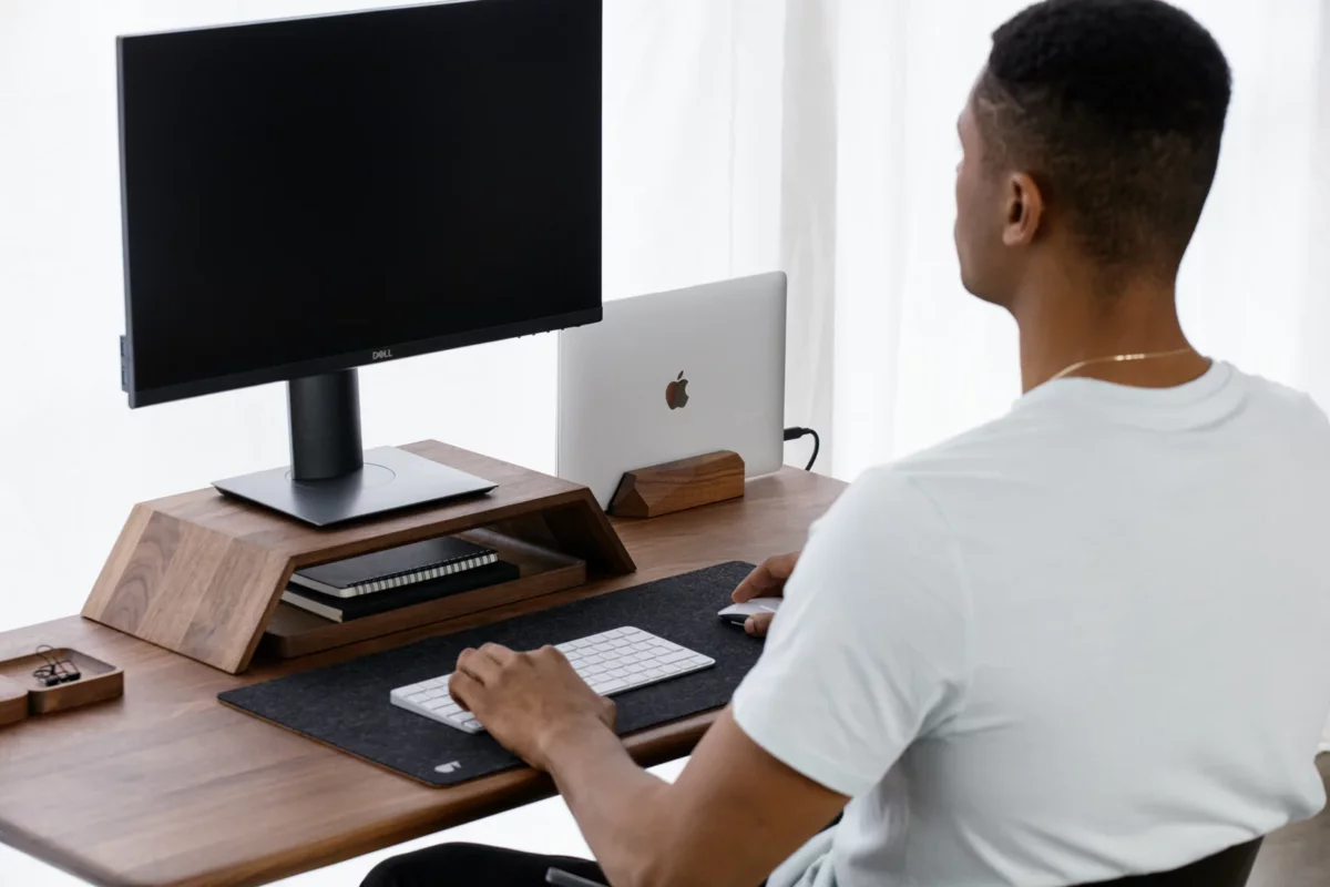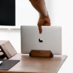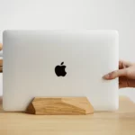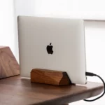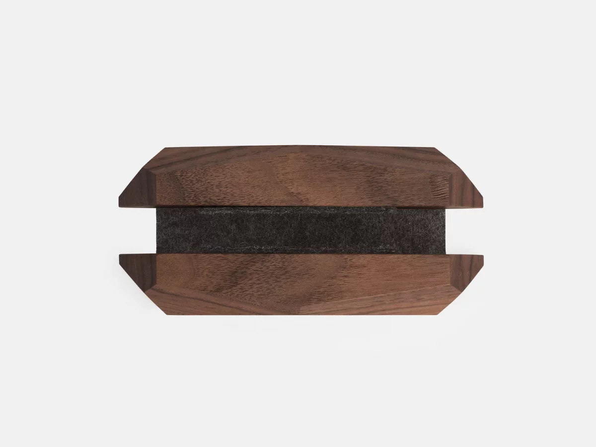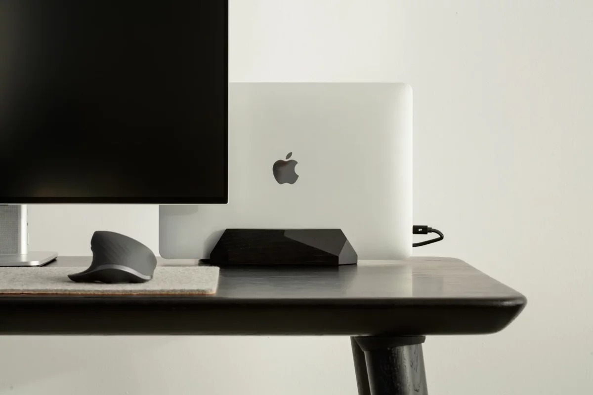 Your workplace becomes more efficient with the Laptop Dock The Laptop Dock is an elegant laptop stand that takes your office organization to a new level. Setting up your laptop vertically not only saves space, especially if you are using an external monitor, but also increases your productivity. This dock sticks securely to the table surface thanks to its robust suction cups and solid construction, while providing optimal protection for your laptop. Robust construction for a secure hold Made from high-quality solid wood and stainless steel, the laptop dock guarantees long-lasting stability and a secure hold for your laptop. Adjustable width for maximum compatibility The stand is suitable for devices with a thickness of up to 2 cm. By using additional felt strips, you can adjust the width individually to keep your laptop in a stable position. Protection from scratches and optimum ventilation A layer of felt at the dock entrance protects your laptop from unsightly scratches while ensuring optimum ventilation. Compact dimensions for efficient space organization With a length of 18 cm, a width of 9 cm and a height of 4.2 cm, the Laptop Dock offers a space-saving solution for your office organization. Enhance your working environment and create more space on your desk with the laptop dock. This stylish and functional accessory not only increases your productivity, but also adds a professional touch to your workspace. Treat yourself to the laptop dock today and experience a more efficient room design.