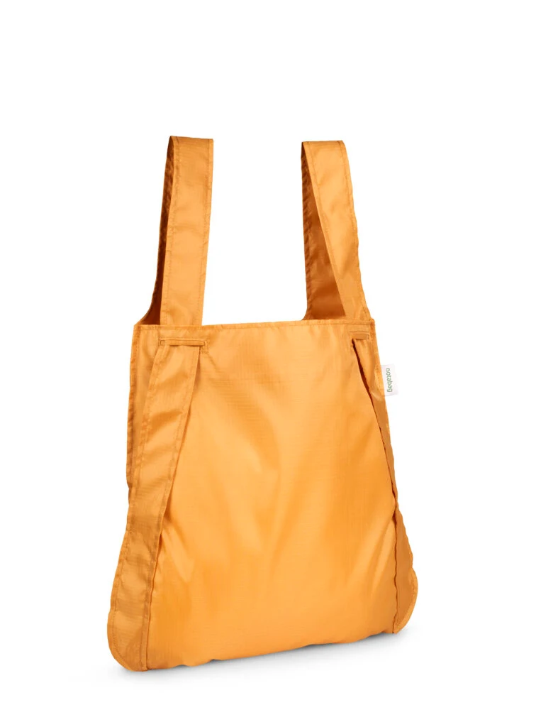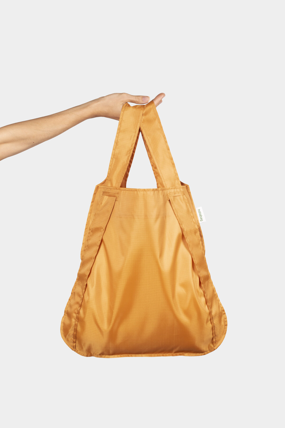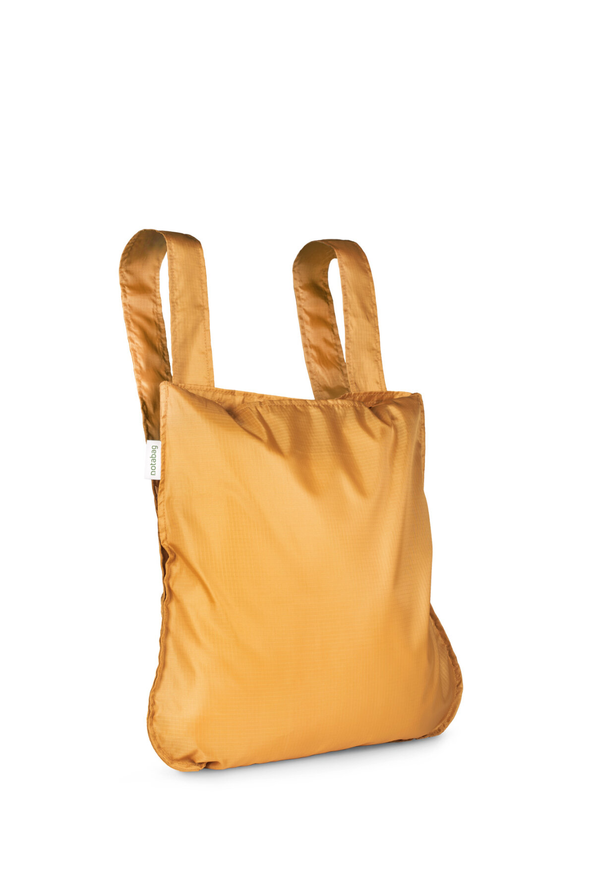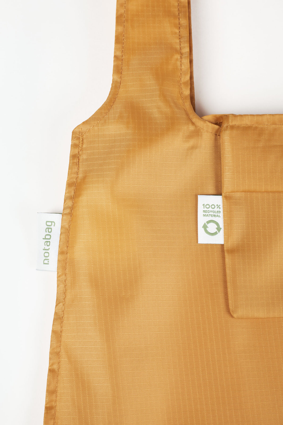 Notabag Recycled – Mustard – Your sustainable lifestyle partner! The clever bag transforms into a rucksack in no time at all and actively contributes to protecting our planet by recycling 12 plastic bottles. Made from 100% recycled PET polyester, it is water-repellent, machine washable and can carry up to 20 kg. Free your hands and carry Notabag Recycled comfortably on your back. It offers space for all your favorite snacks or books and can be easily folded up when you don’t need it. Notabag Recycled – your contribution to an environmentally conscious lifestyle that is both practical and trendy.