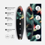 The board features a textured grip EVA deck and a kick pad for quick step changes and improved control. With two fixed and one removable, US standard fin, which sits in a transparent fin box, it offers stability and maneuverability. The fin can be easily replaced to adapt it to your needs.