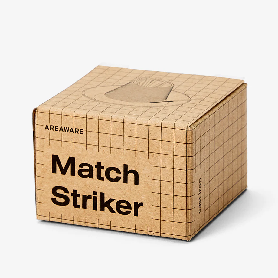Le Match Striker est un récipient simple qui permet de stocker une poignée d’allumettes pouvant être enflammées sur n’importe quelle surface. Les allumettes usagées peuvent être refroidies sur le plateau. Les résidus s’enlèvent facilement avec un soupçon d’huile d’olive. Attention : pour l’utiliser, il faut des allumettes qui peuvent être allumées n’importe où. Nous recommandons les allumettes“Cowboy Matches“. Instructions d’entretien et d’utilisation Les marques de match s’enlèvent avec un chiffon doux et un soupçon d’huile d’olive.