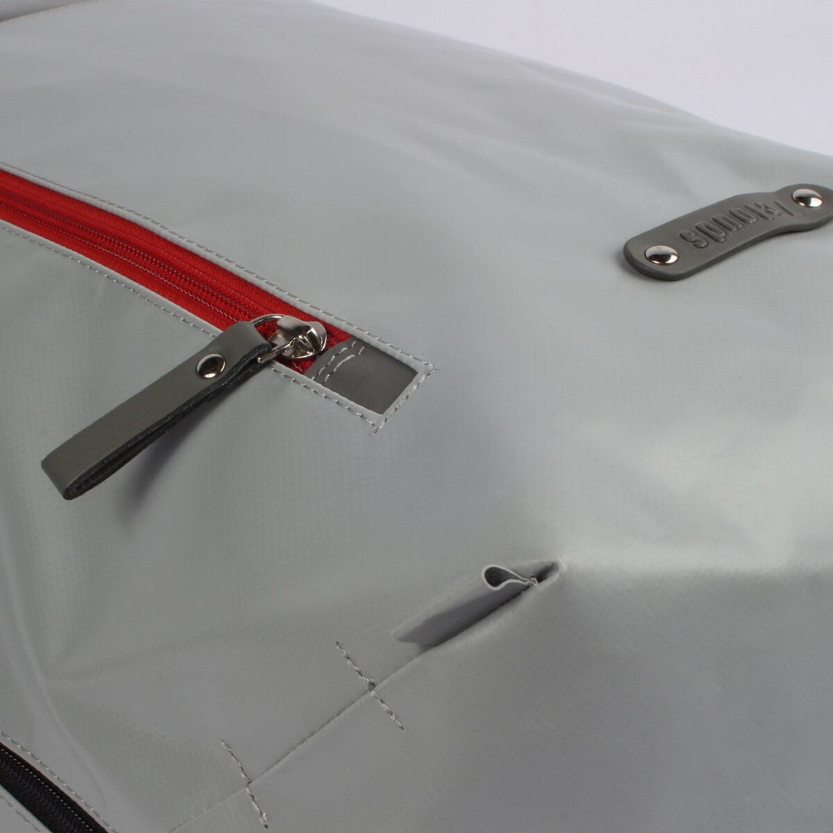 - Extérieur de la sacoche : Poche zippée longitudinale à l’avant