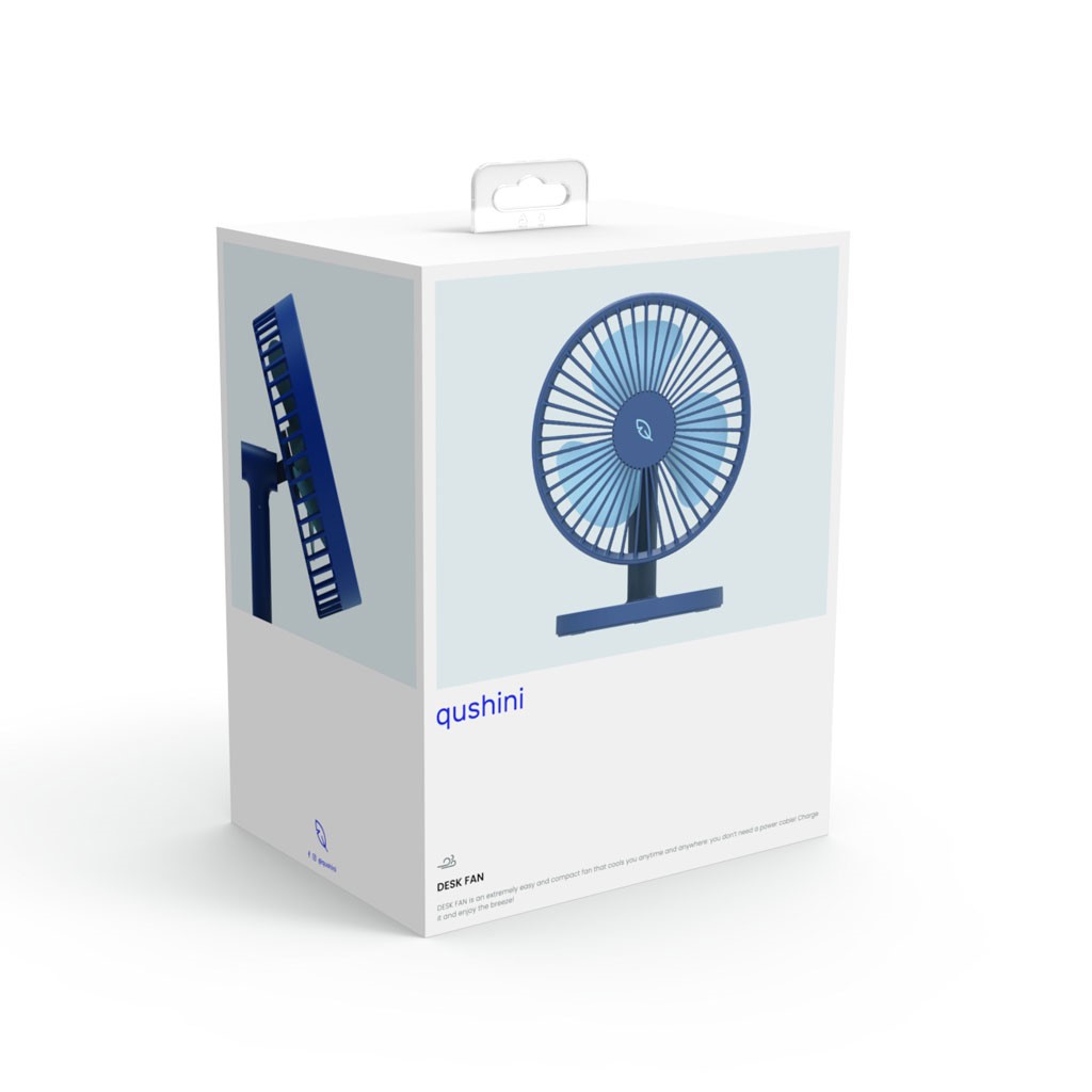 VENTILATEURS PORTABLES QUSHINI. Couleurs pastel et lignes sobres caractérisent ces beaux accessoires fonctionnels et design de Qushini. Le ventilateur de table est un ventilateur léger et compact qui fonctionne partout : pas besoin de câble électrique ! Il dispose d’une base stable qui élimine les vibrations ou le bruit ; le ventilateur de table est adapté à une utilisation au bureau, dans la chambre ou lors d’activités de plein air. Caractéristiques
