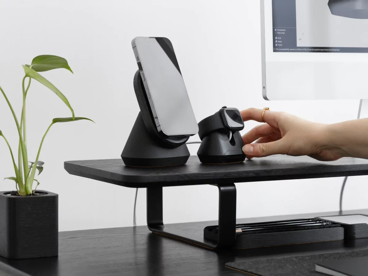 Ce support vous permet de présenter votre Apple Watch avec style et de l’utiliser comme une montre traditionnelle qui vous donne l’heure. Il fait partie de notre collection MagSafe et est le résultat de plusieurs mois de travail. Durant cette période, nous avons créé de nombreux prototypes et réalisé des tests d’utilisabilité approfondis. Le résultat est un produit qui n’est pas seulement fonctionnel, mais qui convainc aussi par son design intemporel.