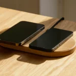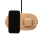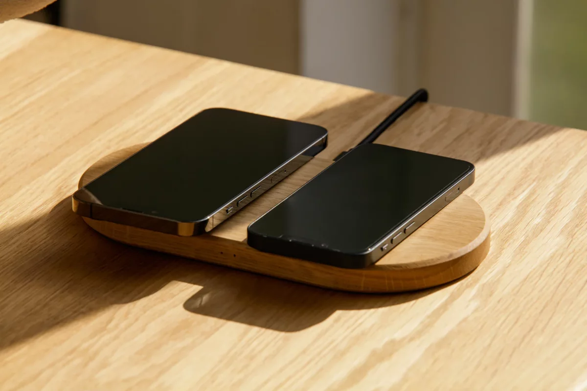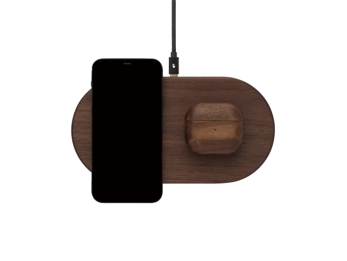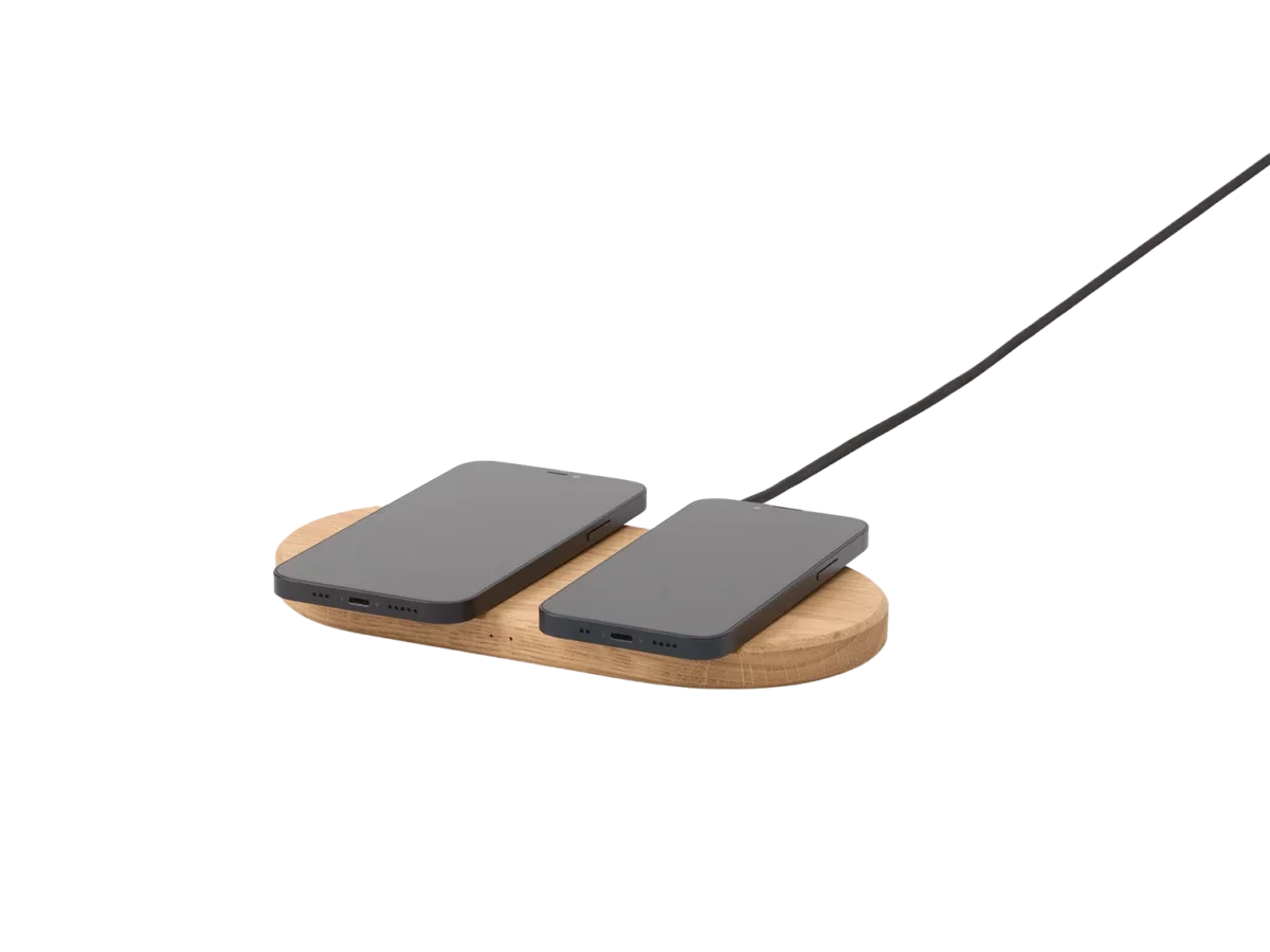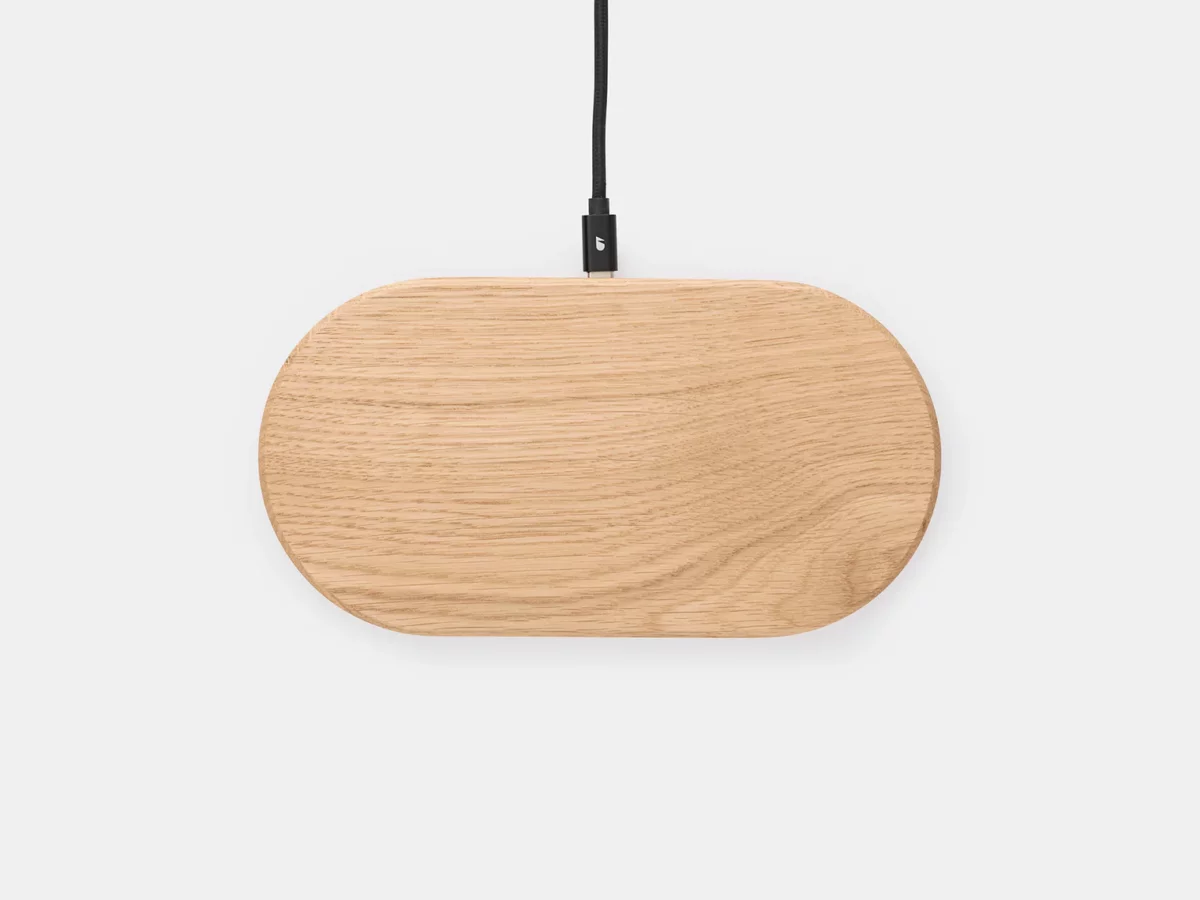 Mit dem Dual Slim Charging Pad wird kabelloses Laden für deine Lieblingsgeräte, die den Qi-Standard unterstützen, zum Kinderspiel. Kein Kabelsalat mehr – leg einfach dein Smartphone auf die schlanke Holzplatte, die Platz für zwei Telefone bietet. Sie passt sich automatisch der Ladegeschwindigkeit deines Geräts an und kann bis zu 15 W erreichen.