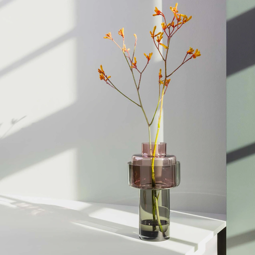 Elegante Vase in Glas-in-Glas-Optik aus zwei verschiedenen mundgeblasenen Glaskörpern. Je nach Straussbeschaffenheit lässt sich das Oberteil umdrehen oder auch ganz weglassen. Mit Blumen, Gräsern oder einfach solo – die skulpturale Schönheit der Vase wirkt mit und ohne florale Begleitung. Pflegehinweis: spülmaschinengeeignet. Jedes unserer Glasprodukte ist in Handarbeit gefertigt und somit ein Unikat. Daher sind leichte Unterschiede in Material, Form und Farbe möglich.