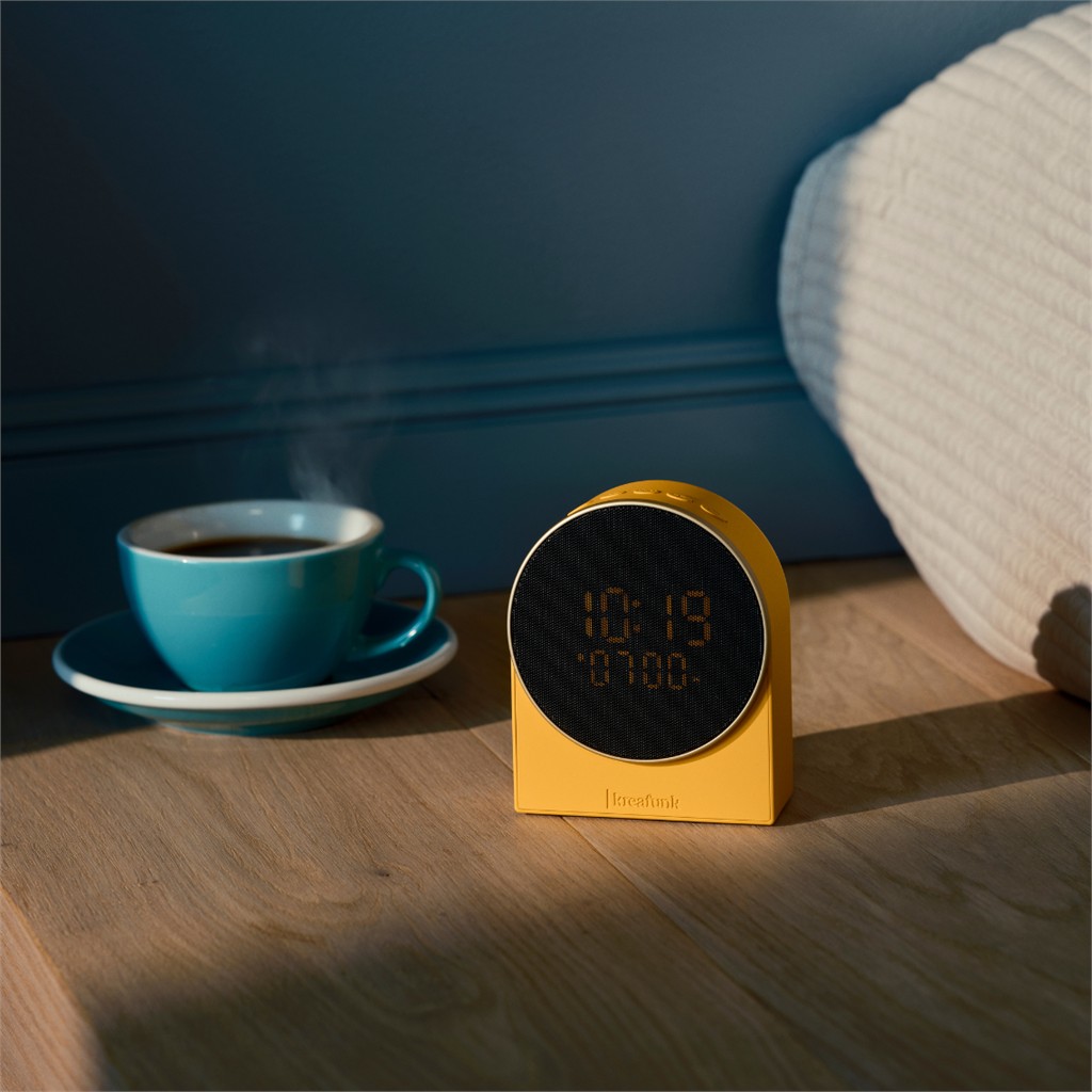Der Kreafunk Ivy ist Wecker und Bluetooth-Lautsprecher in einem – mit elegantem Wecklicht und wasserabweisendem Gehäuse (IPX4). Bis zu 60 Stunden Laufzeit, Bluetooth 5.3 und kompaktes Design für Schlafzimmer, Balkon oder Terrasse.
